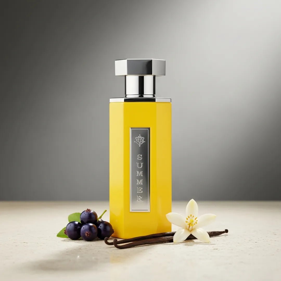 La piramide olfattiva di Summer Yellow è un accordo radioso. Si apre con la nota luminosa e floreale del Fiore d'Arancio, che dona un'immediata sensazione di calore. Il cuore è dominato dal Ribes Nero, che aggiunge una dolcezza fruttata e leggermente acidula. Infine, il fondo si sigilla con la Vaniglia, che avvolge la fragranza in una finitura calda e confortante.
